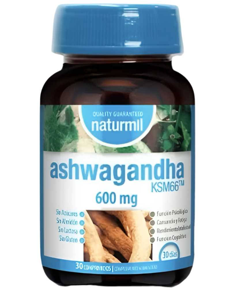Withania somnifera (Ashwagandha KSM66TM, extracto seco patentado de las raíces); agente de carga: celulosa microcristalina; óxido de zinc; antiaglomerante: sales magnésicas de ácidos grasos; D-pantotenato cálcico; cianocobalamina 0,1%; antiaglomerante: dióxido de silicio; piridoxina clorhidrato; clorhidrato de tiamina.\ \ Por 1 comprimido:\ Ashwagandha KSM66™ 600 mg, Vitamina B1 1,1 mg, Vitamina B6 1,4 mg, Ácido Pantoténico 6 mg, Vitamina B12 2,5 µg, Zinc 10 mg
